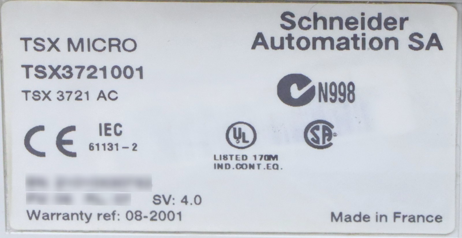 TSX3721001 Contrôleur modulaire Modicon TSX Micro Schneider Electric