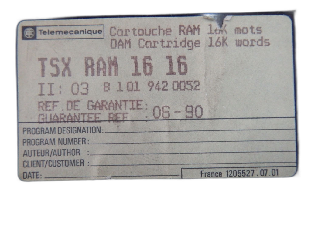 TSXRAM1616 Cartouche mémoire RAM 16 Ko TSX Série 7 Schneider Telemecanique