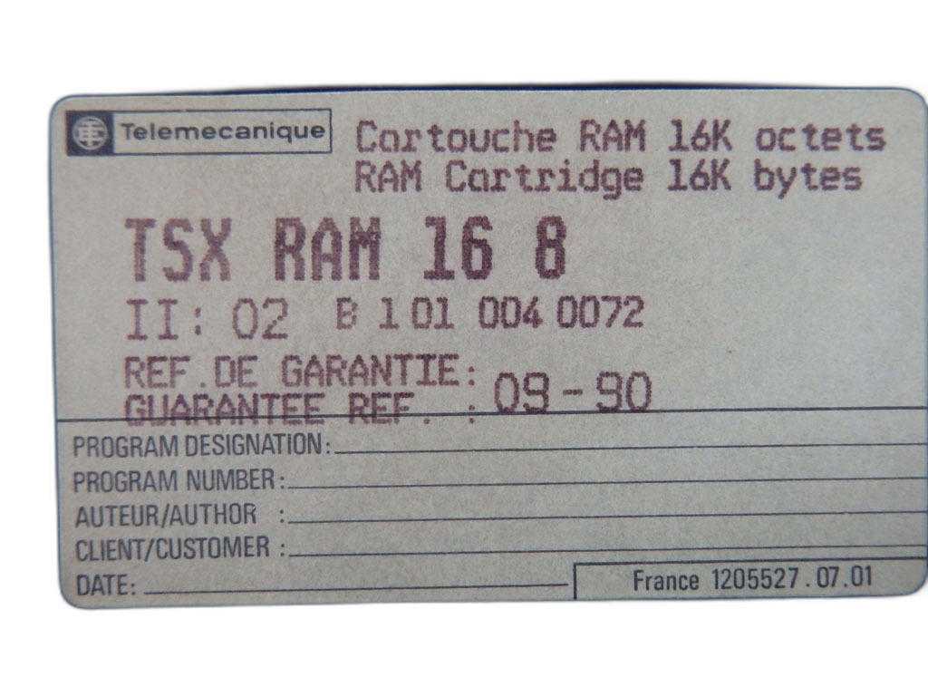 TSXRAM168 Cartouche mémoire RAM TSX Série 7 Schneider Telemecanique